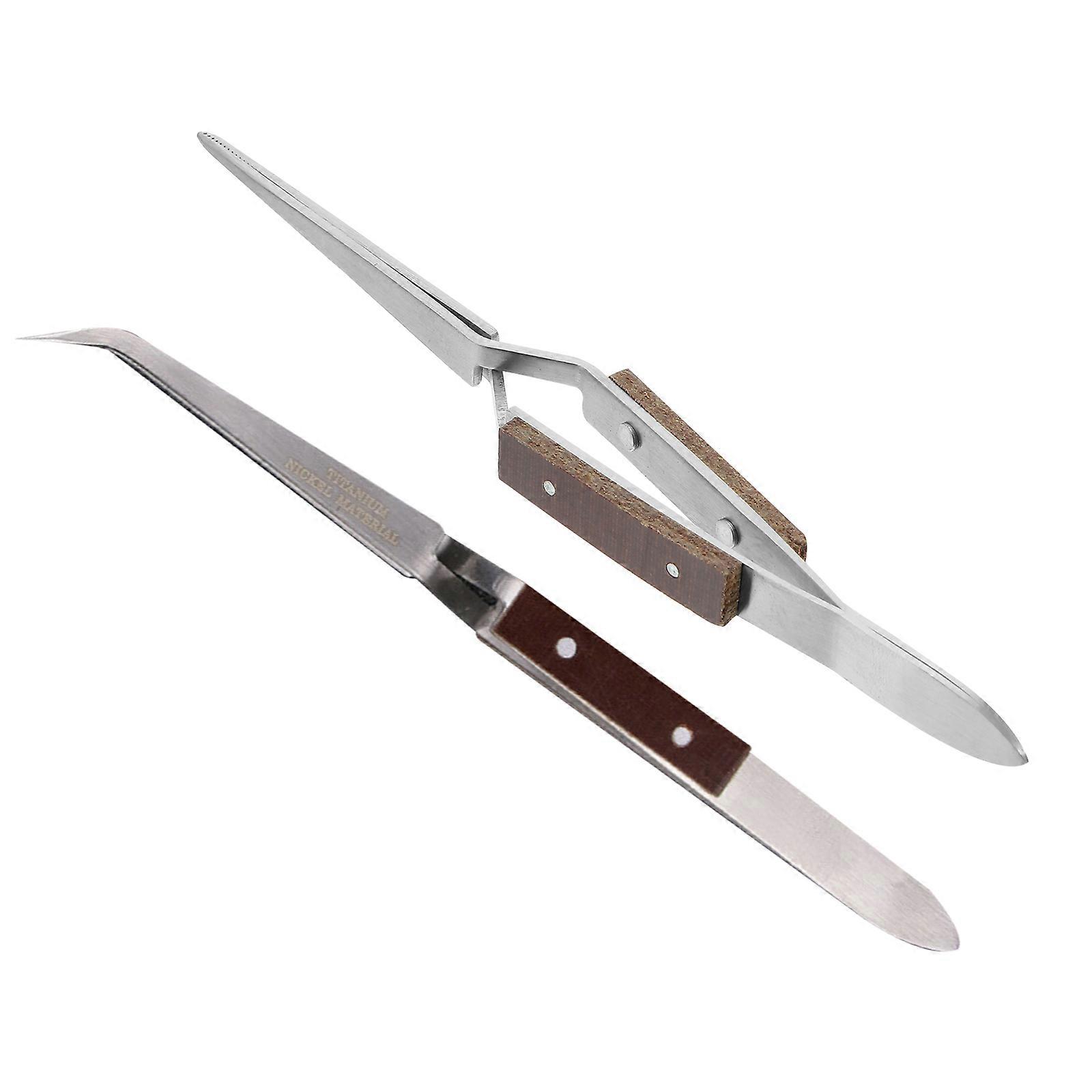 Curved And Straight Tweezers For Laboratory Works Wooden Grip Cutting Soldering Tool 16.2X2.3cm 2Pcs
