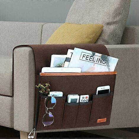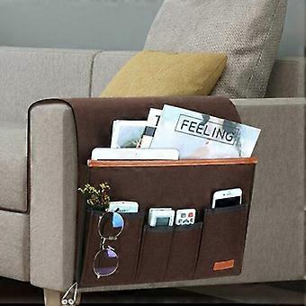 Sofa Armrest Organizer, Armchair Bag Storage with 5 Pockets, Chair Cover for Remote Control, iPad, Magazine, Glasses (Brown)