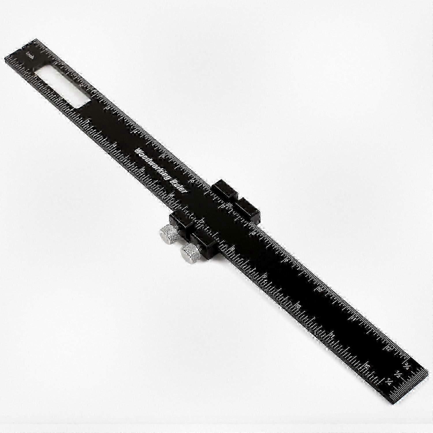 Precision Pocket Rule for Woodworking - 12 Inch Metal Slide Stop Marking Ruler for Metric and Inch Measuring Tools for Wood Crafts and Scrib