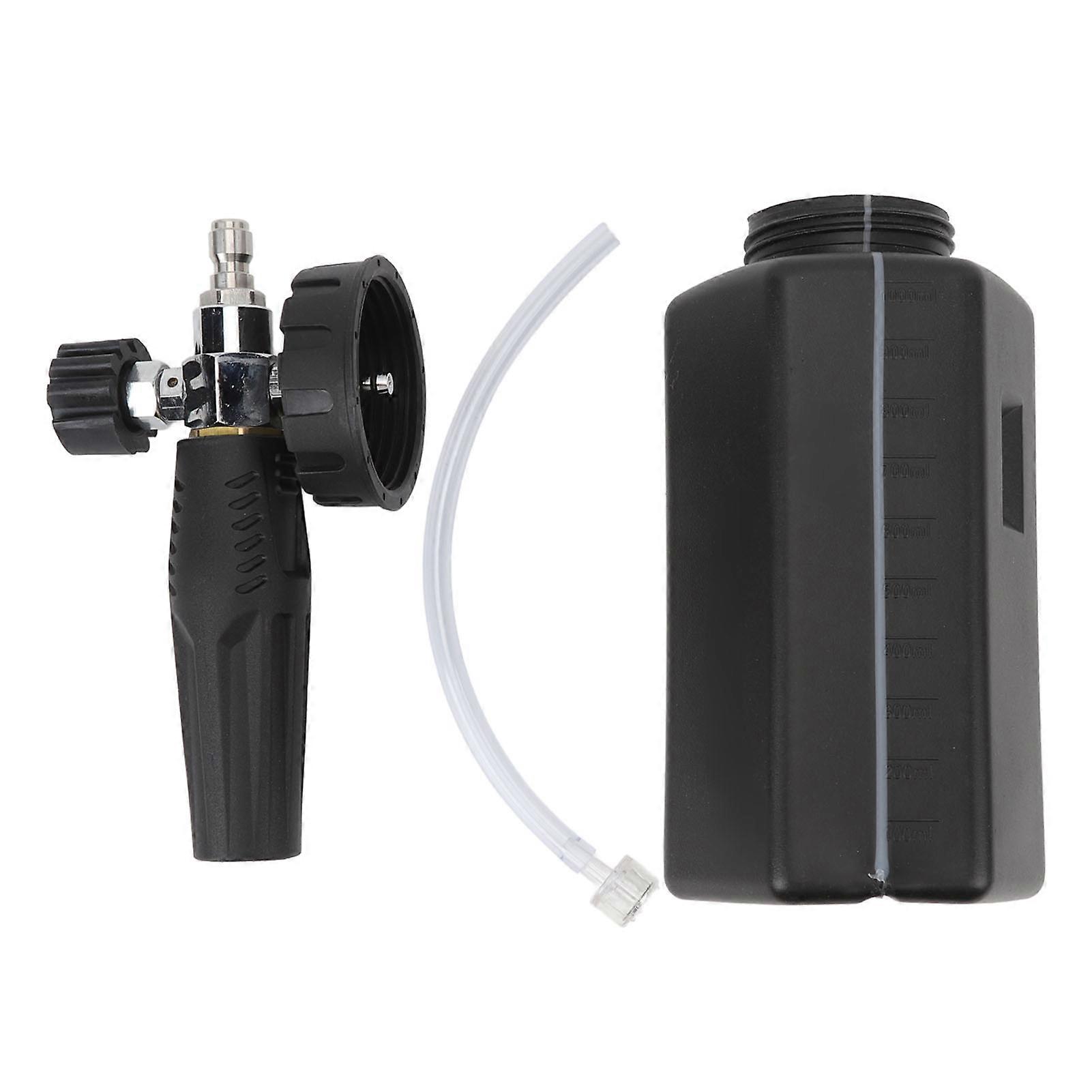 1、Easy to Use: Pour some soap into the bottle, add warm water for a thick foam, then connect the 1/4in quick connect to a pressure washer or wand (1000PSI‑3600PSI pressure washer), and finally use knob to adjust the foam level. 2、Adjustable Foam Level: Foam cannon features an adjustable foam level, enabling you to customise the desired foam thickness simply by tweaking the knob, facilitating a comprehensive and effective cleaning process. 3、Enhanced Cleaning: It comes with additional 1.1mm orifice nozzles that produce thicker foam than the original nozzles, improving the cleaning effectiveness on not just vehicles, but a variety of surfaces. 4、Large Volume: Boasting a maximum volume of 1000ml, this foam cannon eliminates the inconvenience of repeated refills, allowing for a more seamless cleaning experience. 5、Versatile Use: Foam cannon is ideal for cleaning motorbikes, cars, roofs, driveways, and sidings. It's also perfect for window and floor cleaning, offering an excellent tool for beautifying trucks or SUVs. Item Type: Pressure Washer Foam Cannon Material: Copper + Plastic Maximum Capacity: 1000ml Additional Nozzle Inner: 1.1mm / 0.04in Additional Nozzle Outer: 6.35mm 1/4 inch 1 x Pressure Washer Foam Cannon (3 accessories in total) 1 x Instructions