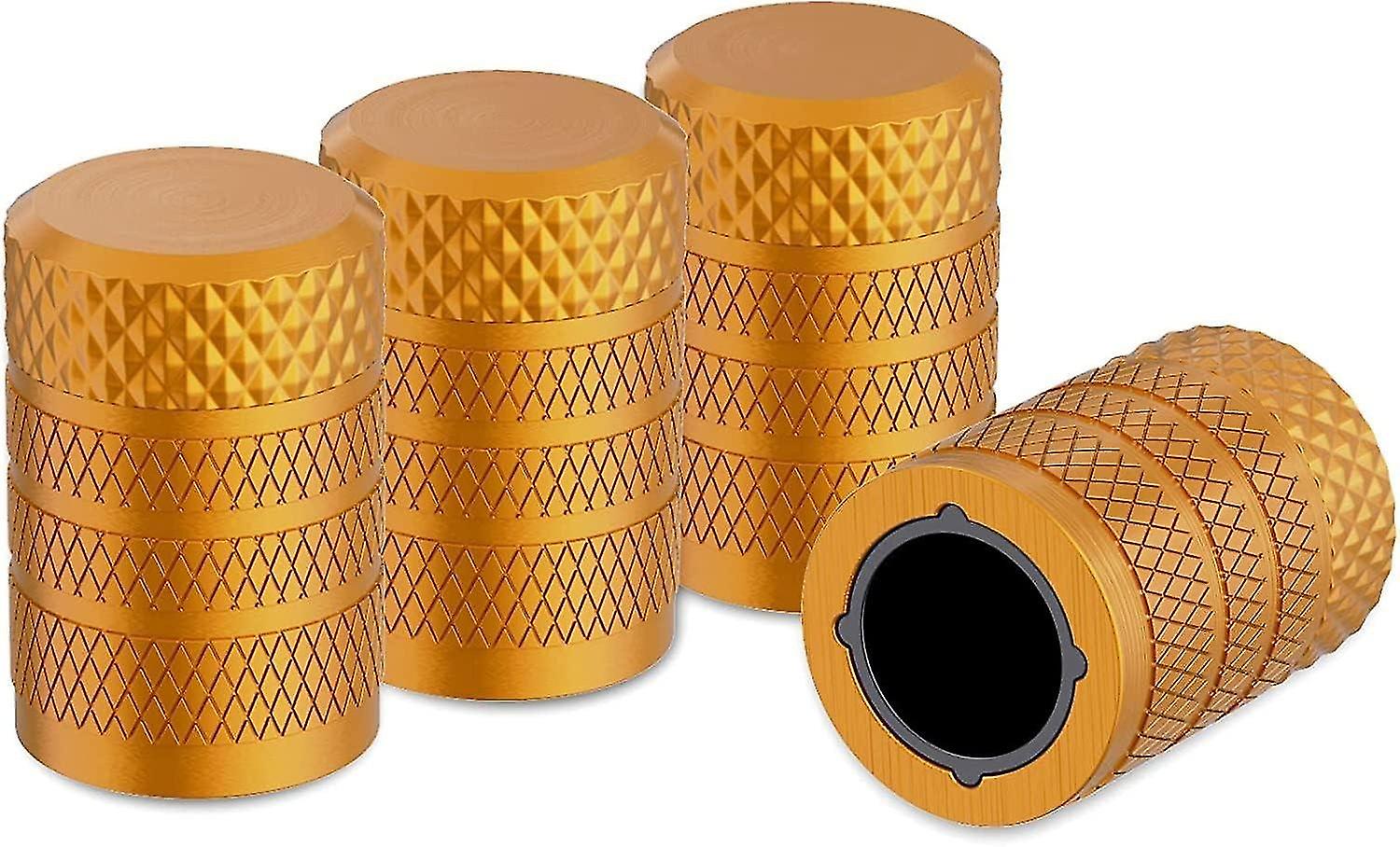 Tire Valve Caps, Gold, 4 Pcs/Pack, Anodized Aluminum, Corrosion Resistant, Universal Valve Cover for