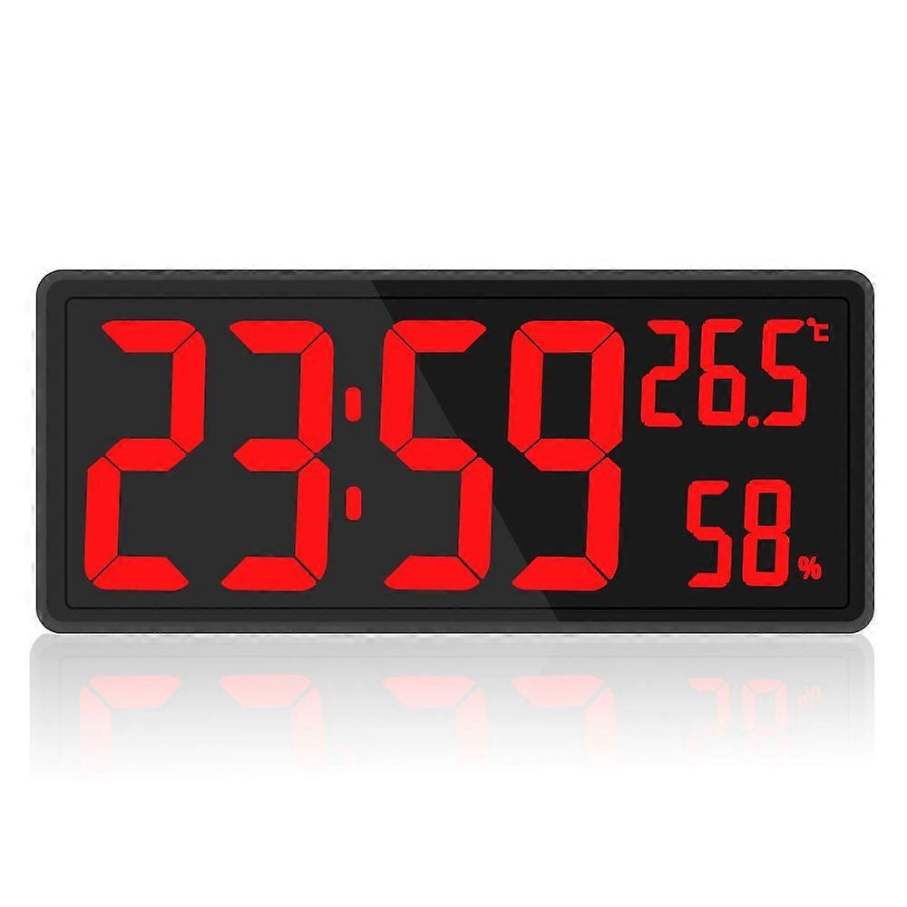 Digital Clock Large Display, Large Digital Wall Clock with Temperature and Humidity, Digital Wall Clock with LED Numbers for Bedroom, Office, Clear Re