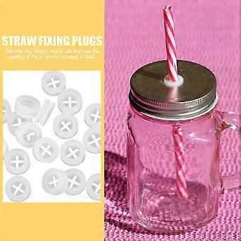 Jar Lid Straw Holes Straw Fixing Plugs Wooden Lid for Drinking 80Pcs
