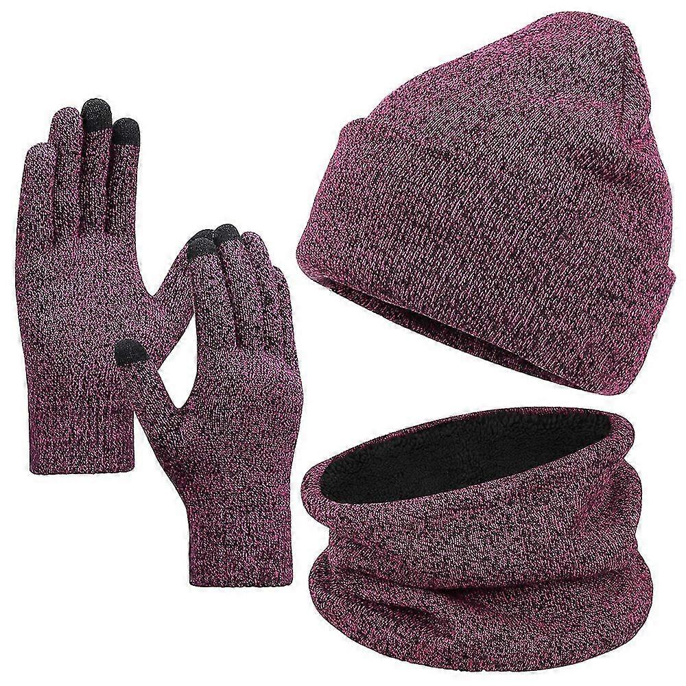 Hat Scarf Gloves Set Women And Men Fleece Scarf Winter Warm Knitted Neck