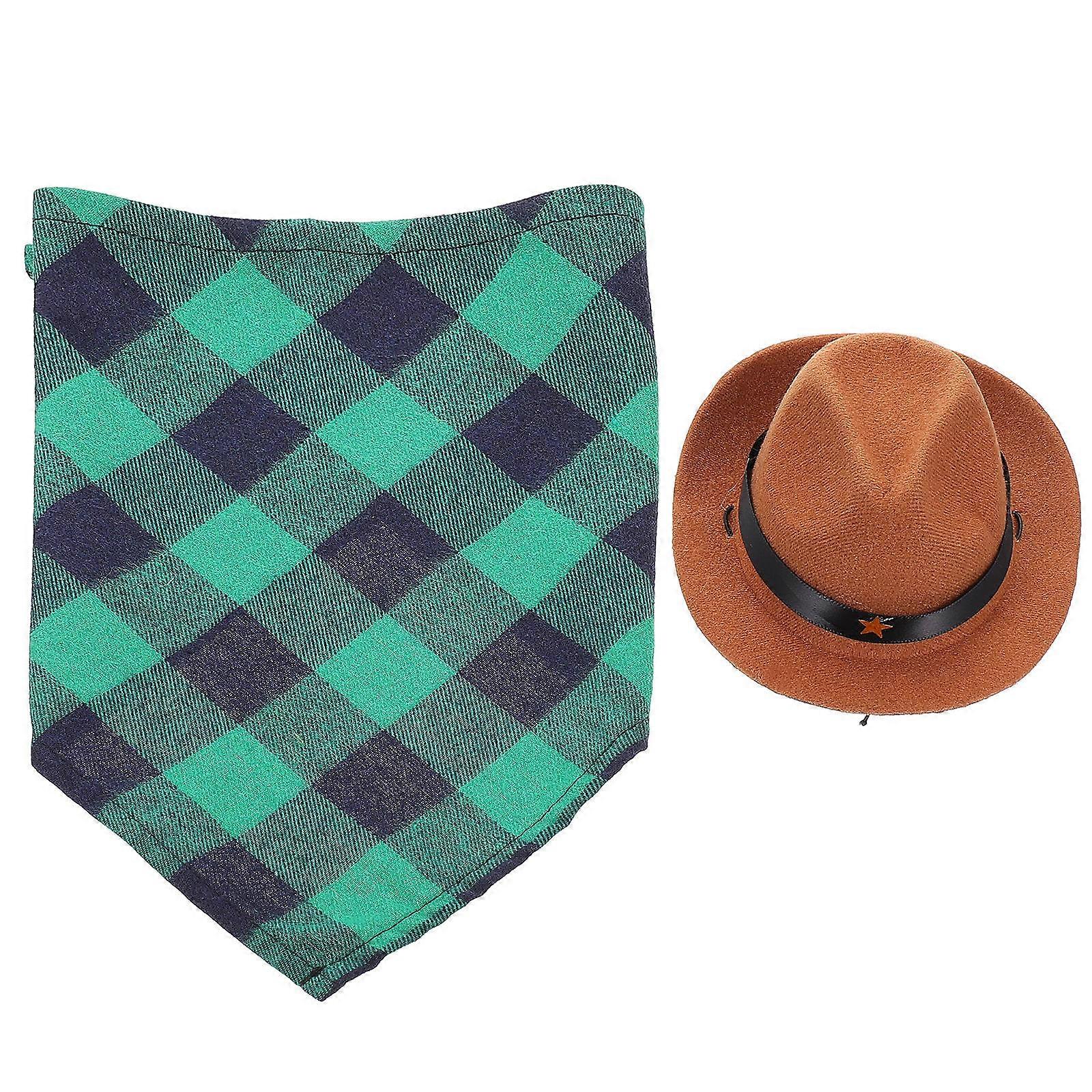 Dog Hat Cowboy Style Decorative Pet Hat with Bandana 2Sets for Pets