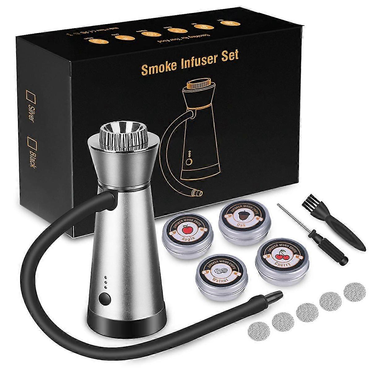 USES: Use with types of wood chips, teas, herbs, spices, hay, dried flowers. It only takes 3-5 minutes to add cold smoke flavor and aroma to food or drinks. No tools required to assemble or disassemble. Easy to clean with wipe or water, but dishwasher use is not recommended. Portable and - easy to carry around, suitable for your barbecue, picnic, cooking requirements. Function:Low-Medium-High Special uses of products:Smoked fish and seafood, molecular cuisine, cocktails, nuts and snacks Battery model and parameters:external 2 x AA batteries (not included) Whether to ship with electricity:No Current:0.2A maximum Input voltage and current:1.6-3V Waterproof level:daily waterproof Other special operating instructions:essential items for molecular gastronomy Full set of accessories:1 x smoker, 1 x hose (35CM), 1 x brush, 1 x screw tool, 5 x filter, 1 x box, 1 x Instructions in Chinese and English, aluminum box sawdust x 4 flavors Colour:B:Silver Material:Aluminum alloy + zinc alloy + plastic Package Contents: 1 * Cocktail Smoker kit Only the above package content, other products are not included. Note: Light reflection and different displays may cause the color of the item in the picture a little different from the real thing. The measurement allowed error is +/- 1-3cm.