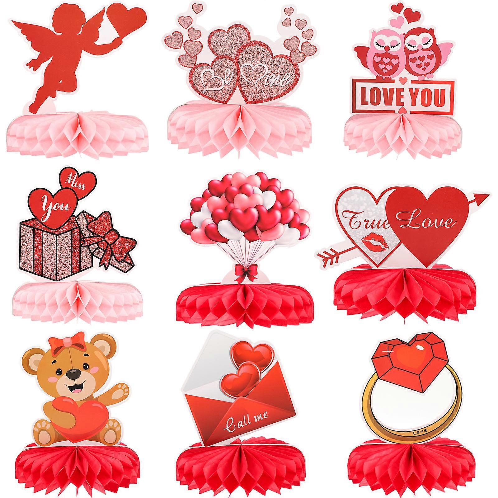 Heart Honeycomb Centerpieces Valentine Decor Paper Valentine Party Supplies 9Pcs
