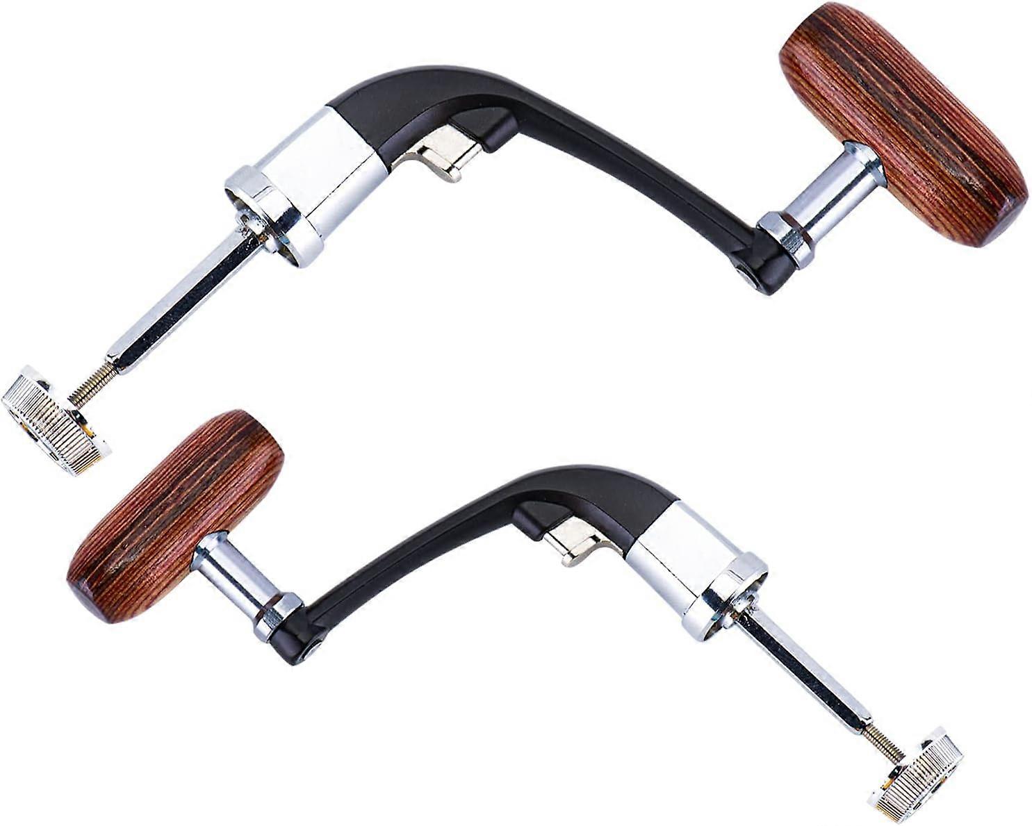 Fishing Reel Folding Rotary Knob Power Handle Two Sizes Rotatable Spinning Reel Replacement Parts With Black Aluminum Crank Arm And Wooden Grip -S& M(