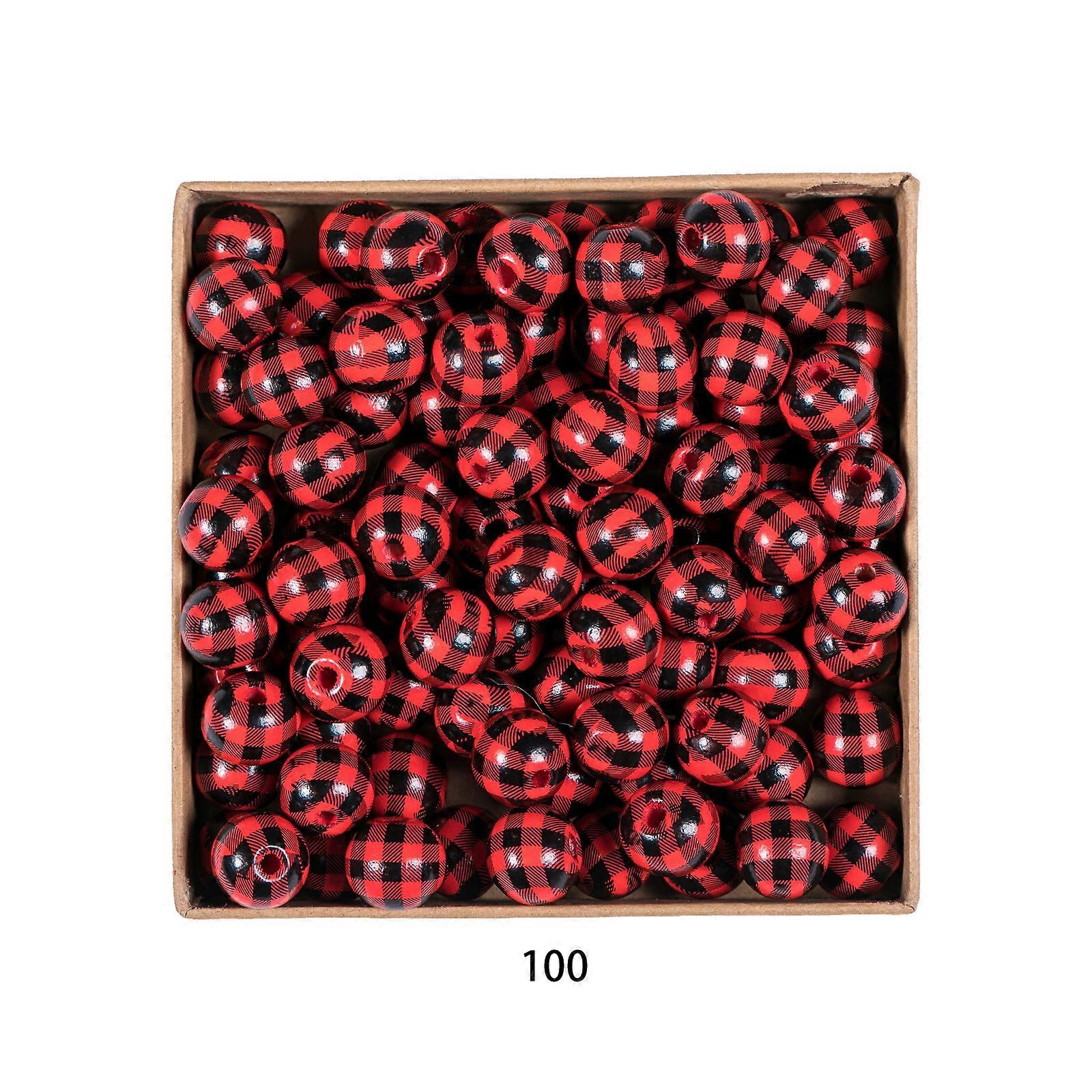 Plaid Wood Beads Handcrafts Hemu Black White Grid DIY Handmade Wooden Natural Farmhouse Handicrafts String Home Decor