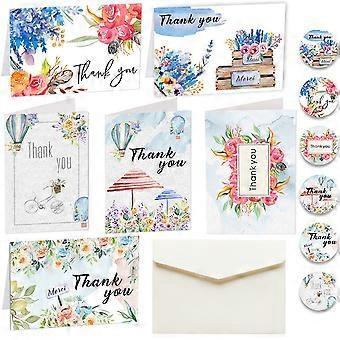 Flower Cards with Envelopes -12 Interesting and Creative Neutral Thanks Cards with 6 Unique Designs - Folded 3.9 x 5.9 Greeting Cards Thank You