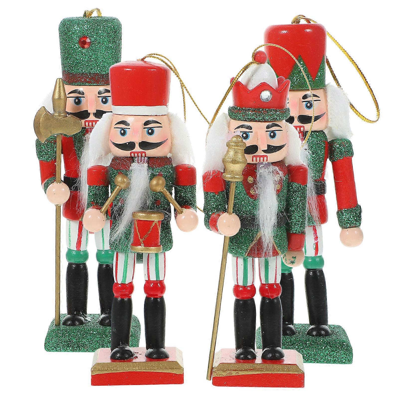 Nutcracker Soldier Ornaments Wooden Christmas Decorations Assorted .72X1.38X1.38in Decoration 4Pcs