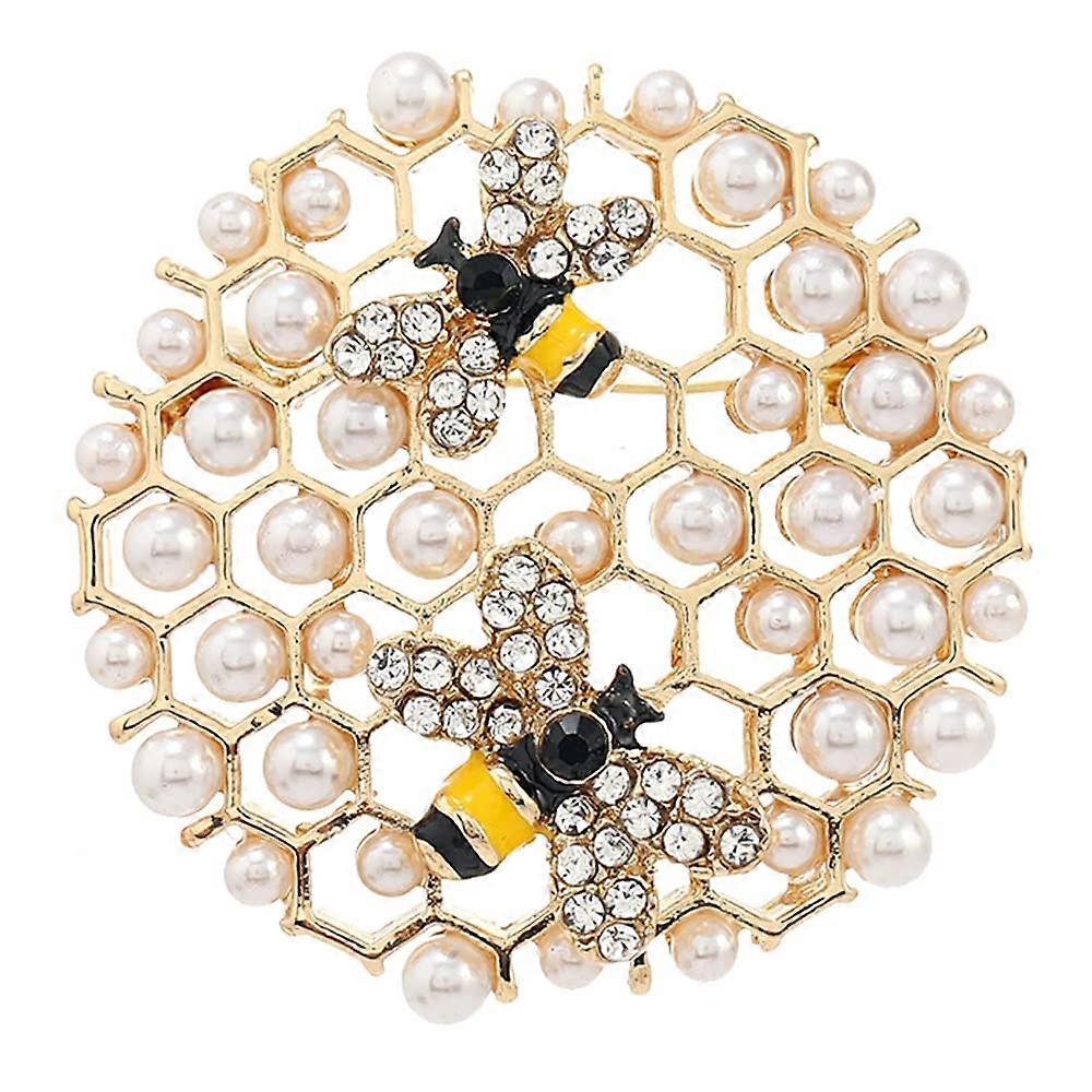 Honeycomb Bee Brooch Pin - Gold-Plated Rhinestone & Pearl Animal Jewelry for Women, Elegant Insect Design, Fashion Accessory
