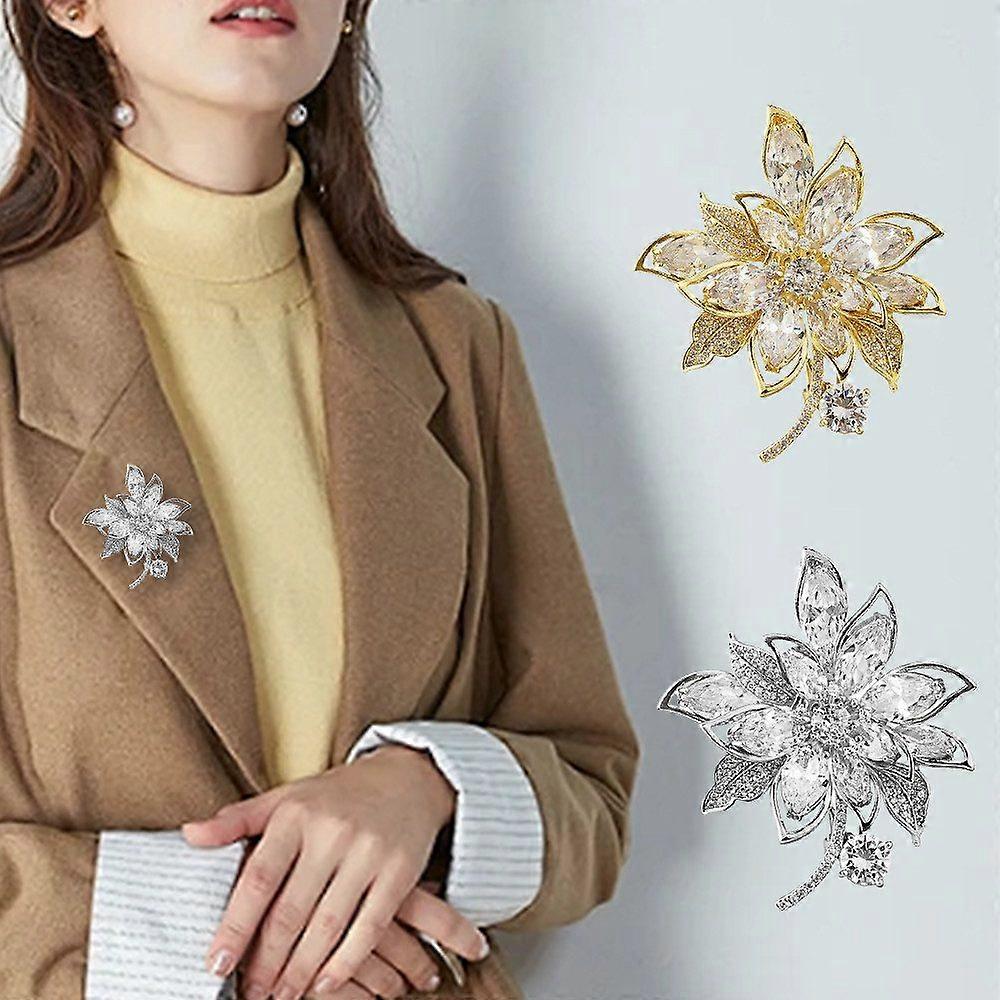 Brooch Rhinestone Flower Brooch Crystal Snowflake Brooch Pin for Women Ladies 2pcs Jewelry Accessory