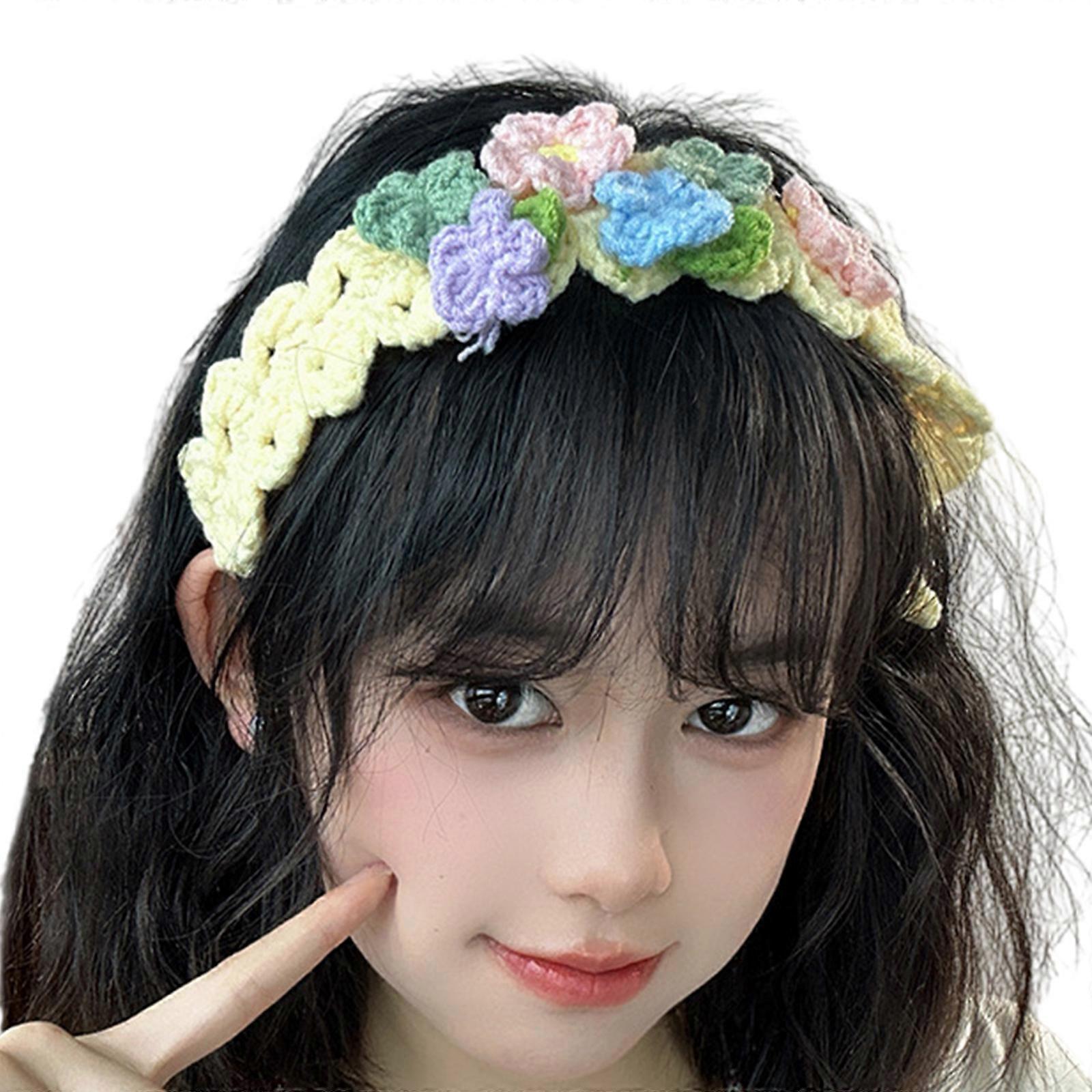 Hair Scarf Floral Headband Head Wrap Cottagecore Knitted Knitted for Adults Creative Elegant Headwear Yellow