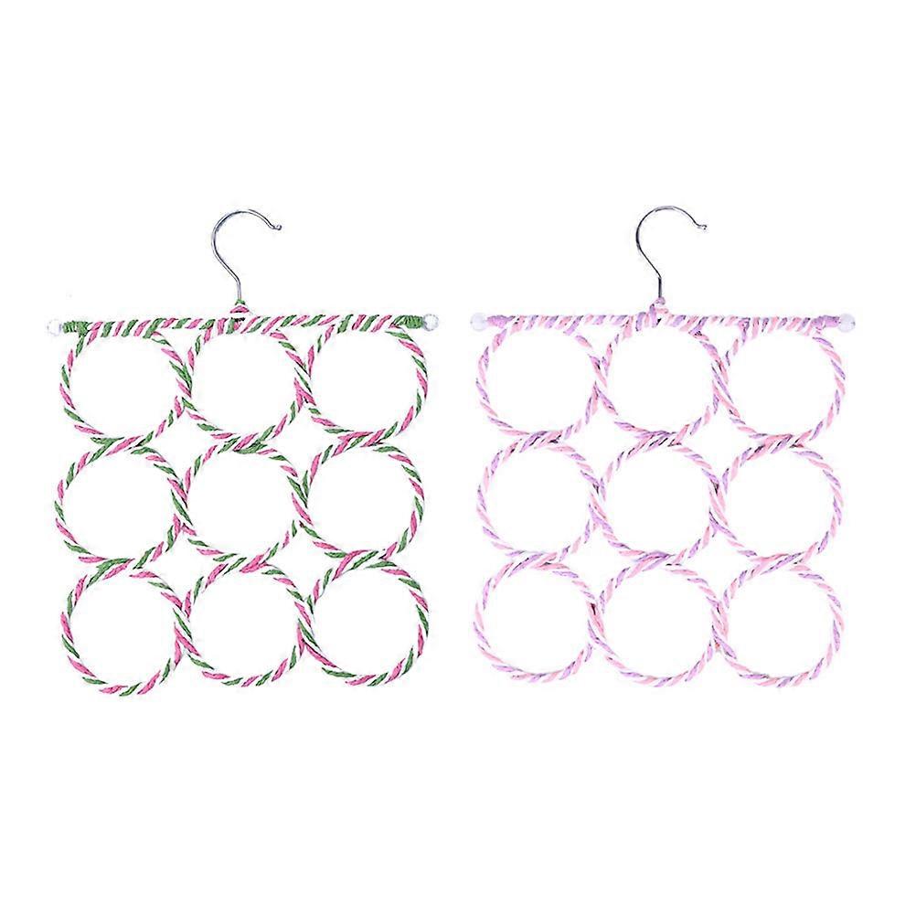 Scarf Organiser Hanger Foldable 9-Ring Paper Rattan Towel Tie Holder Rack 2Pcs Home Use