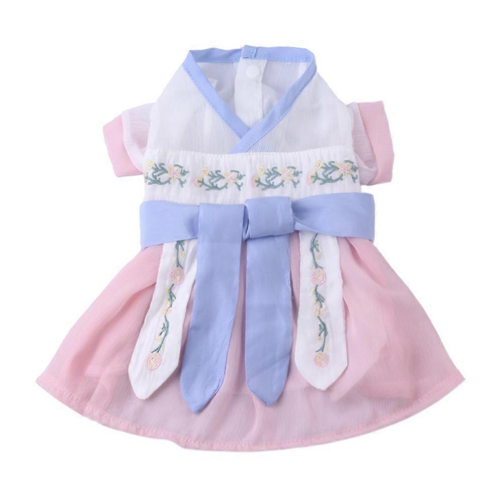 Pet Dress Cat Clothing Peach Pink Chinese Style Decorative for Walk M 1Set