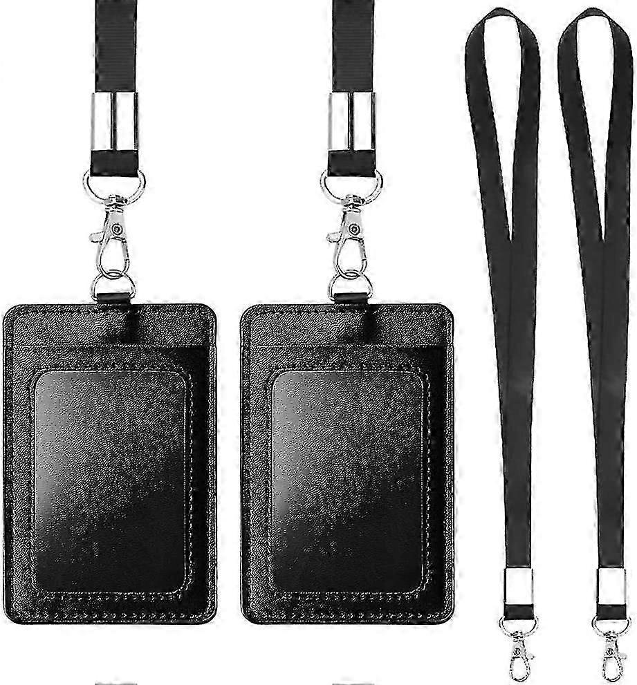 Badge Holders, Vertical Pu Leather Id Badge Card Holders With Clear Id Window And Detachable Neck Lanyardblack2 Pack-MXBC [jkw]