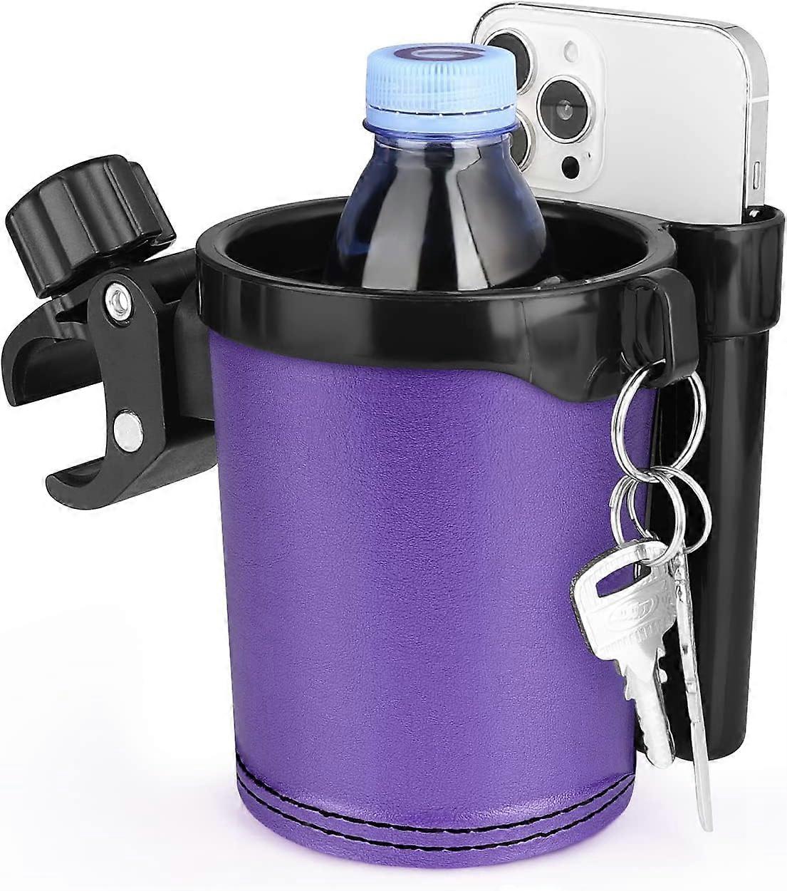 Stroller Cup Holder with Cell Phone Keys Holder, 3-in-1 Universal Bar Drink Cup Bottle Holder for Stroller, Bicycle, Wheelchair, Walker, Scooter,Purpl