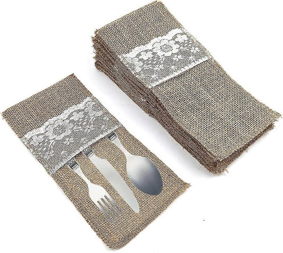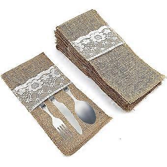 Jute Cutlery Holder, 20 Pcs Cutlery Bag Rustic Jute Lace Cutlery Holder Silverware Holder, For Wedding Party Christmas Decorations