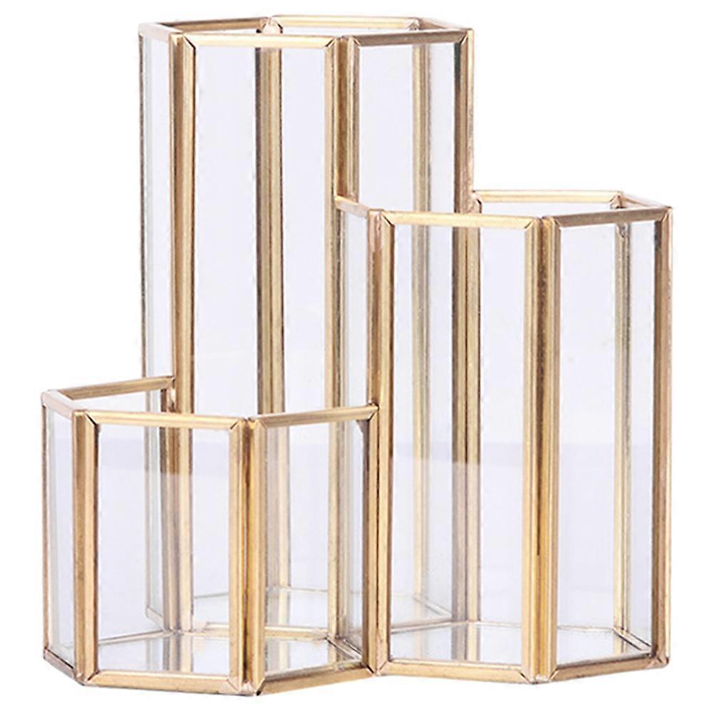 Pen Organizer Makeup Brush Holder Multi-functional Storage For Cosmetics Brushes Pens Ornaments 12X11.6X11CM Glass Alloy 1Pack