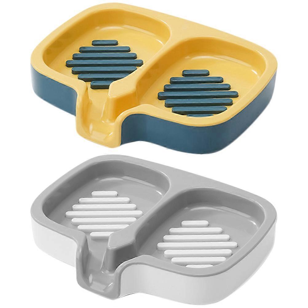 Bathroom Soap Holder Self Draining Soap Tray White Gray Bathroom Use 2Pcs