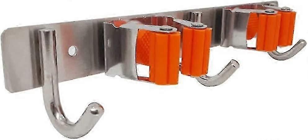 Utility Broom Holder, Stainless Steel Wall Mounted Storage Tool, With 2 Holders And 3 Hooks, Storage Solution