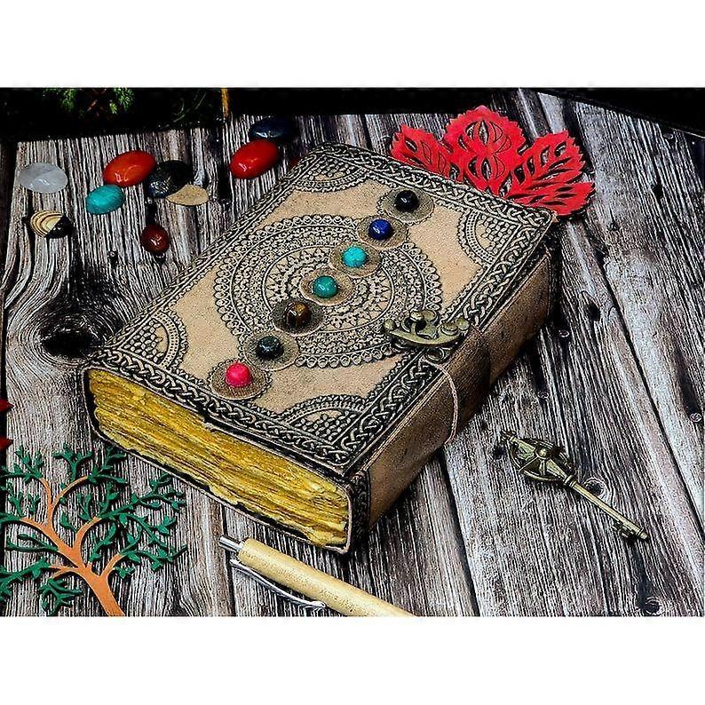 Blank spell book of shadows journal with lock clasp handmade leather seven stone diary seven chakra prayer pagan book