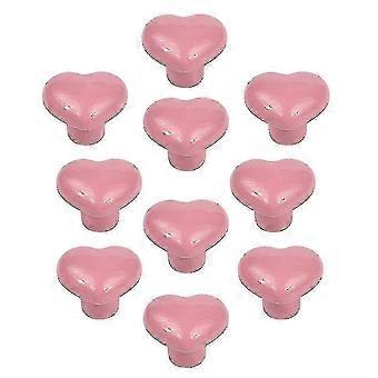 Ceramic Drawer Knobs, Heart-Shaped Cabinet Pulls with Screws for Furniture Decor (10-Pack, Pink)