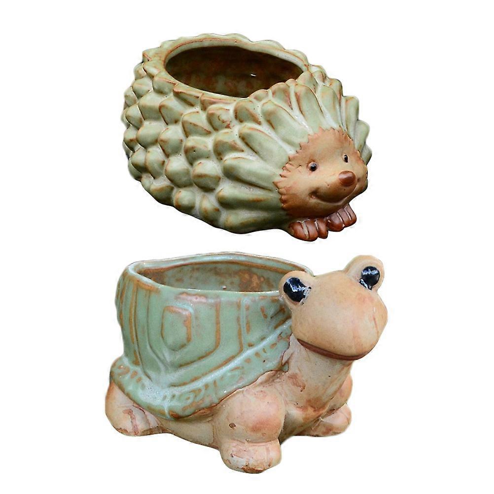 Ceramic Succulent Plant Holders Decorative Flower Pots Unique Turtle Hedgehog Design Indoor Outdoor Home Office Use 2pcs