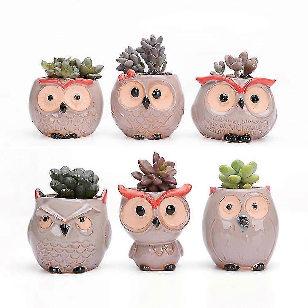 Assorted Owl Ceramic Mini Flower Pot for Gardening 6Pcs