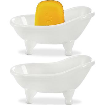2 Pack Ceramic Soap Dish Bathtub, White Decorative Bar Soap Holder, Small Porcelain Soap Tray With Drainage Hole For Shower Bathroom Vanity.