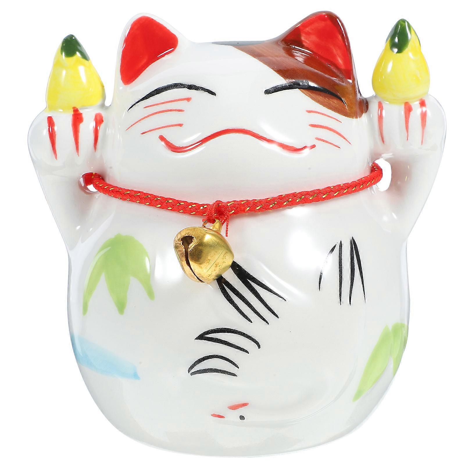 Ceramic Fortune Cat Coin Container Fortune Cat Sculpture Home Decoration 10.00X8.50X7.50CM Money Saving 1Pack