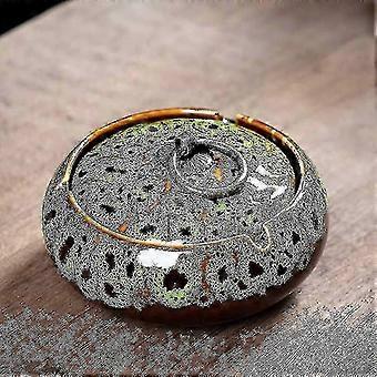 Ceramic Windproof Ashtray with Lid, Retro Indoor Outdoor Cigarette Holder