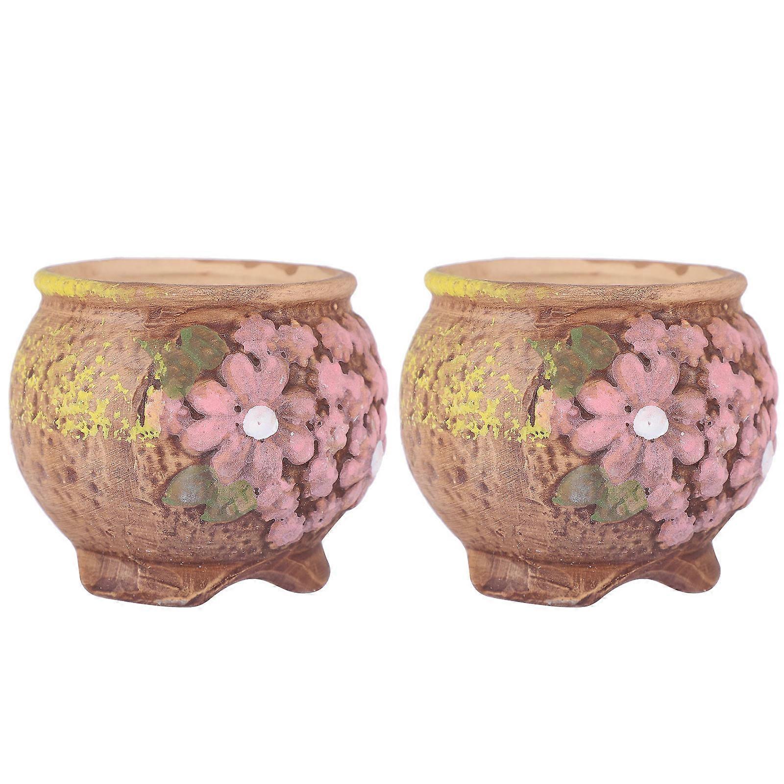 Cactus Planter Container Ceramic Mini Size For Living Room And Office Table Hand Painted 2Pcs