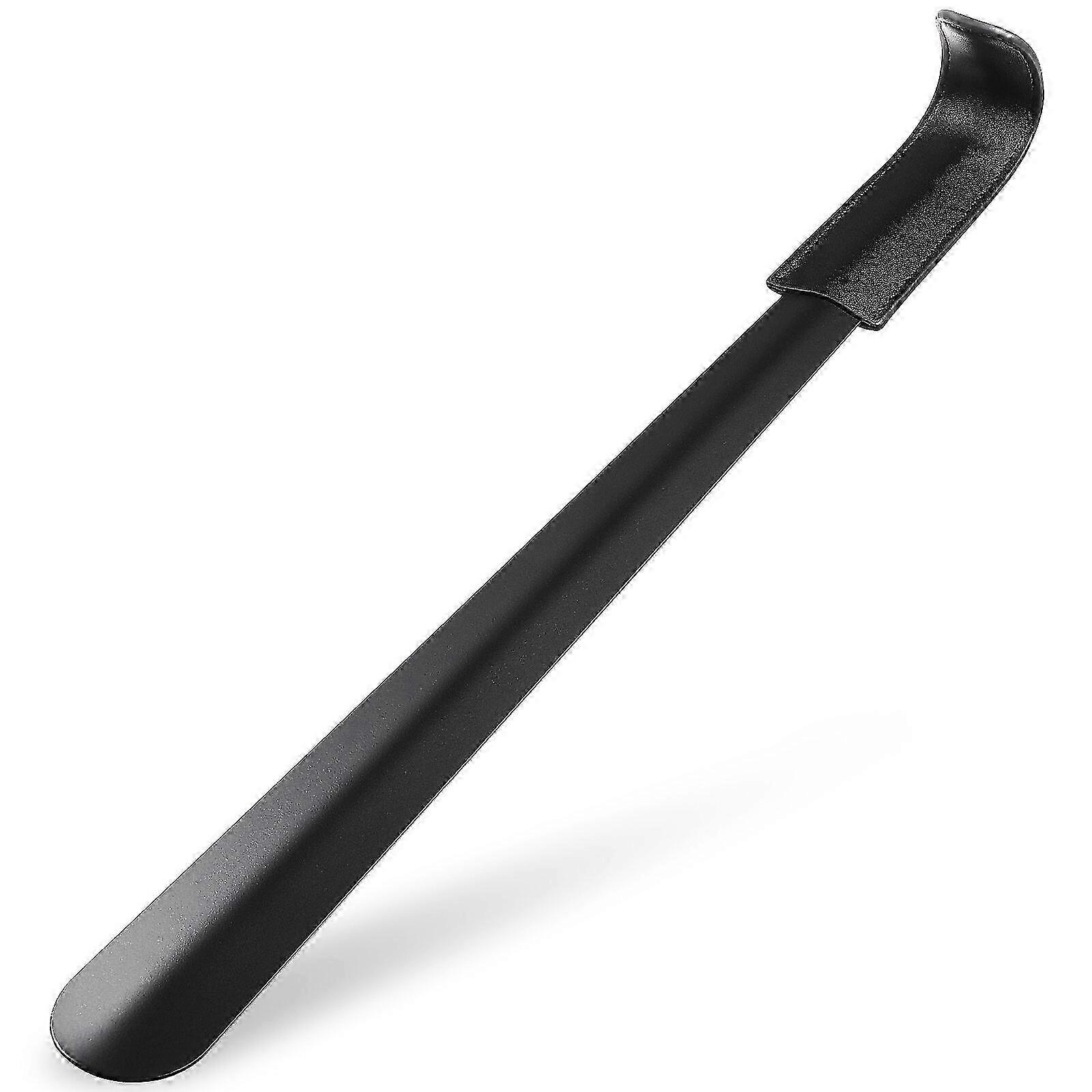 Long Handle Shoe Horn with Leather Cover for Women Men Elderly - 42x4cm - Black
