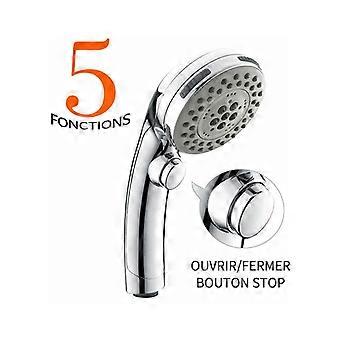 Chrome Shower Head with Stop Button Hand Shower 5 Jets to Choose from Anti-Scale Shower Head Universal Type