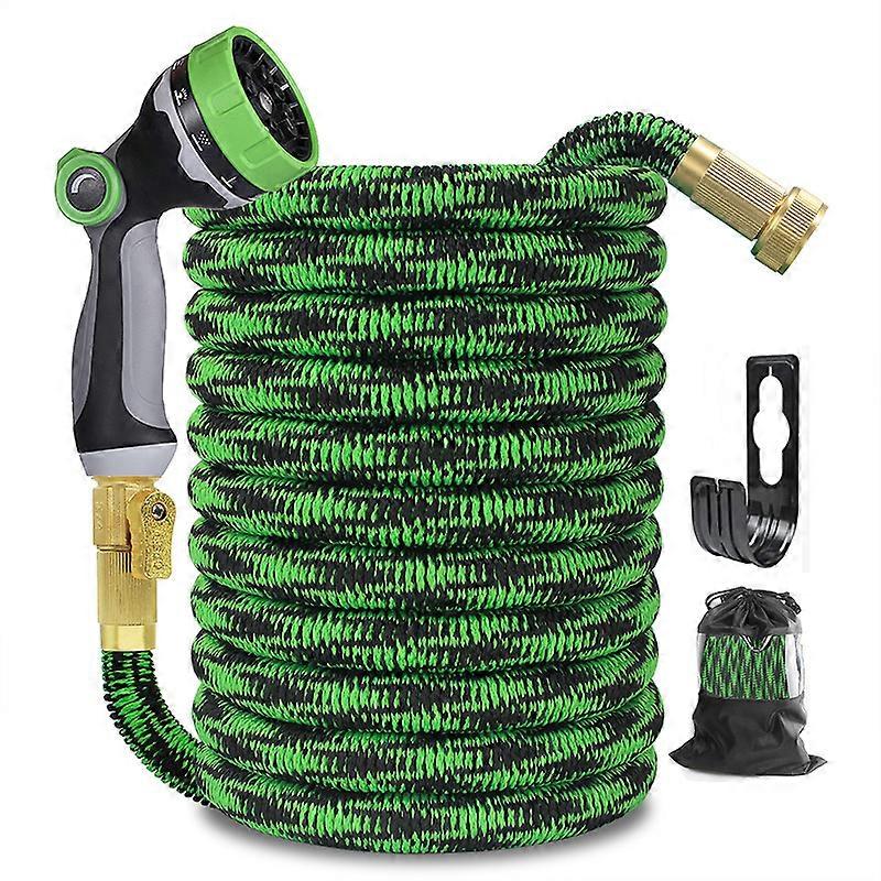 Garden Multifunctional Nozzle Garden Retractable Garden Hose Hose Set Brass Head 100FT Green Black Horizontal Stripe