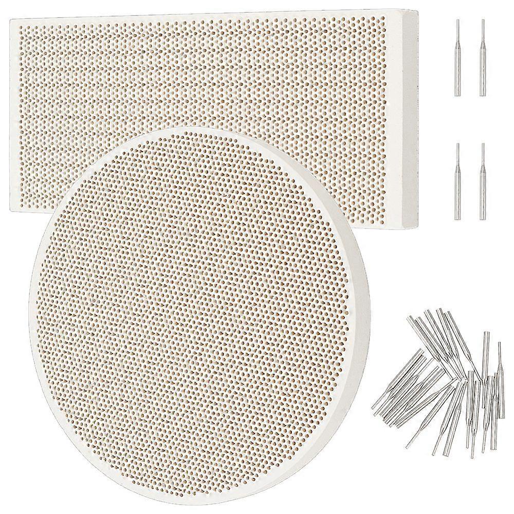 Quartz Honeycomb Ceramic Soldering Boards Melting Panel Jewelry Making Tools with 316 Surgical Stainless Steel Needles PapayaWhip 130~163x72~130x13mm