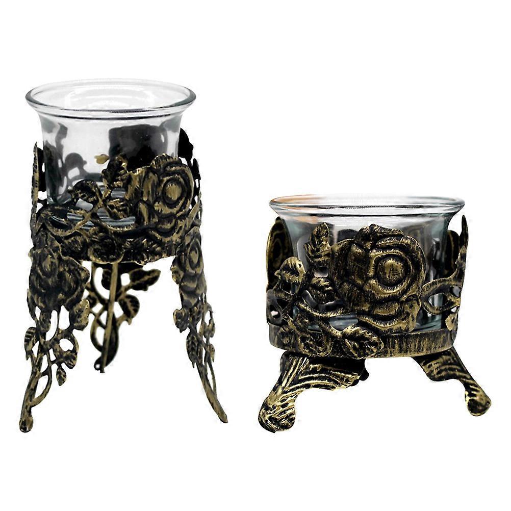 Tea Candles Holders Rose Shaped Candle Holder Desktop Decoration Short Style Dark Brown 8x7x6cm Iron Decorative Purpose 2Pcs