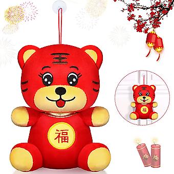 Chinese New Year Red Plush Tiger Toy Ornament Decorations 2022 Year of Tiger Festival Decoration Good Luck Plush Red Tiger Stuffed Animal Table Shelf