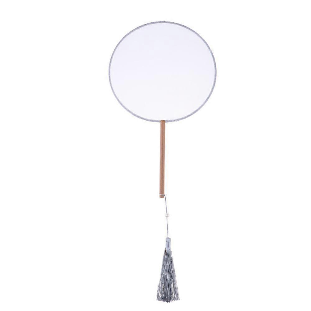 Chinese Court Style White Silk Round Fan for DIY Hand Painted Gray Gift