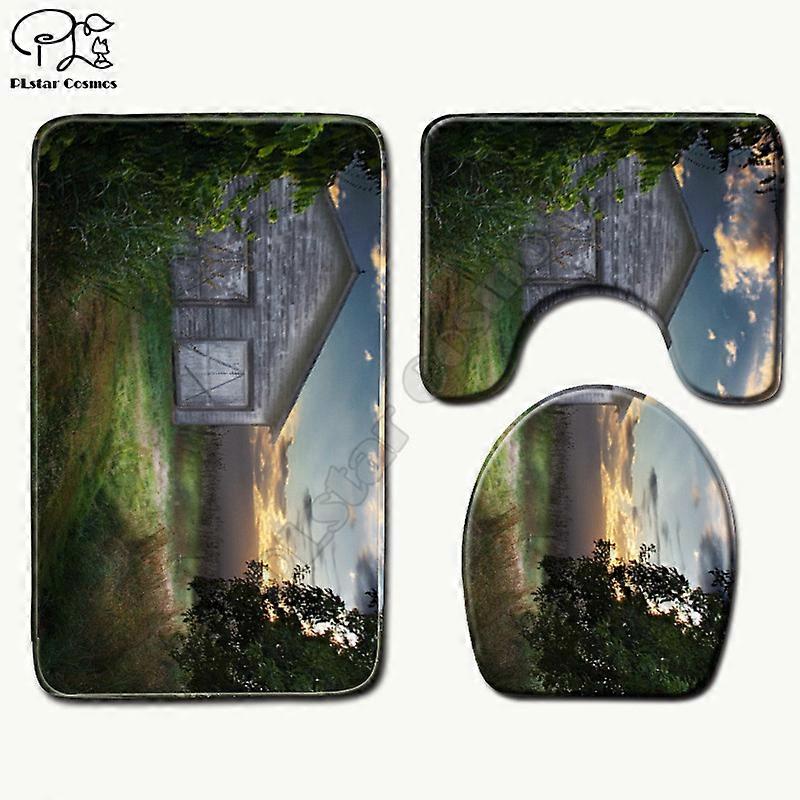 Cartoon funny Beautiful scenery pattern 3D printed Bathroom Pedestal Rug Lid Toilet Cover Bath Mat Set drop shipping