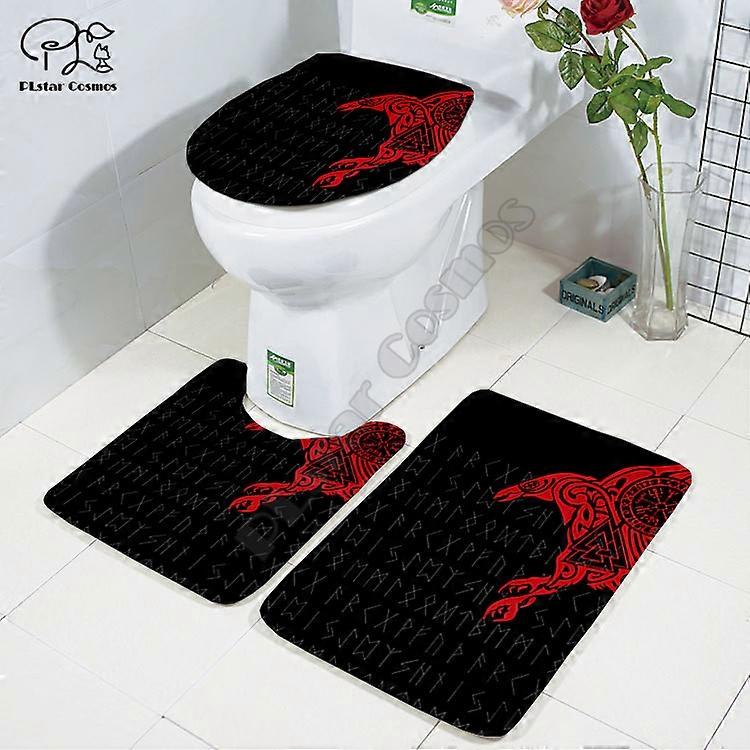 Cartoon funny Viking tattoo 3D printed Bathroom Pedestal Rug Lid Toilet Cover Bath Mat Set drop shipping style-3