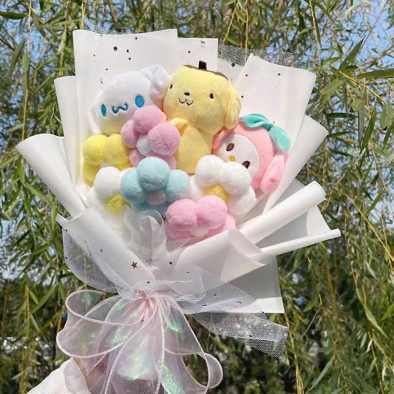 Cartoon My Melody Kuromi Cinnamoroll Kt Cat Plush Doll Toy Sanrio Bouquet Gift Box Valentine's Day Christmas Graduation Gifts