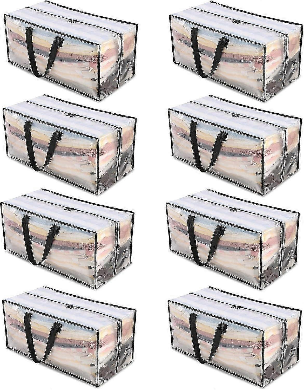 Moving Bags 90L - 8 Clear Heavy Duty Extra Large Storage Bags for Clothes - Packing Bags with Backpack Straps Strong Handles Zippers - College Travell