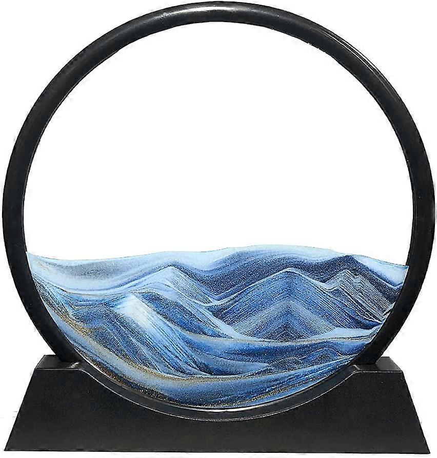 Moving Sand Art Picture Round Frame Sandscapes In Motion Blue Ocean Deep Sea Sand Art Relaxing Toy Desktop Home Office