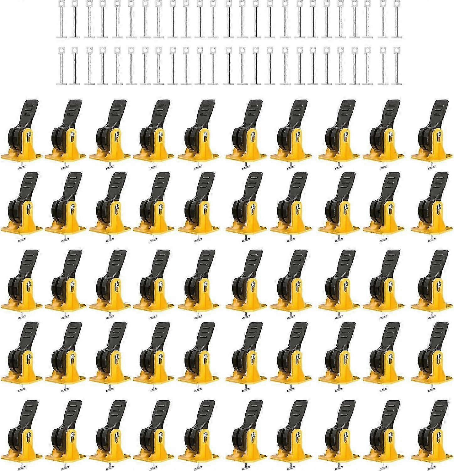 (Yellow + Black) 100 Tile Leveling System Set, 50 Tile Levelers and 50 Replacement T-Nail for Floors and Walls - Tile Spacer Clips