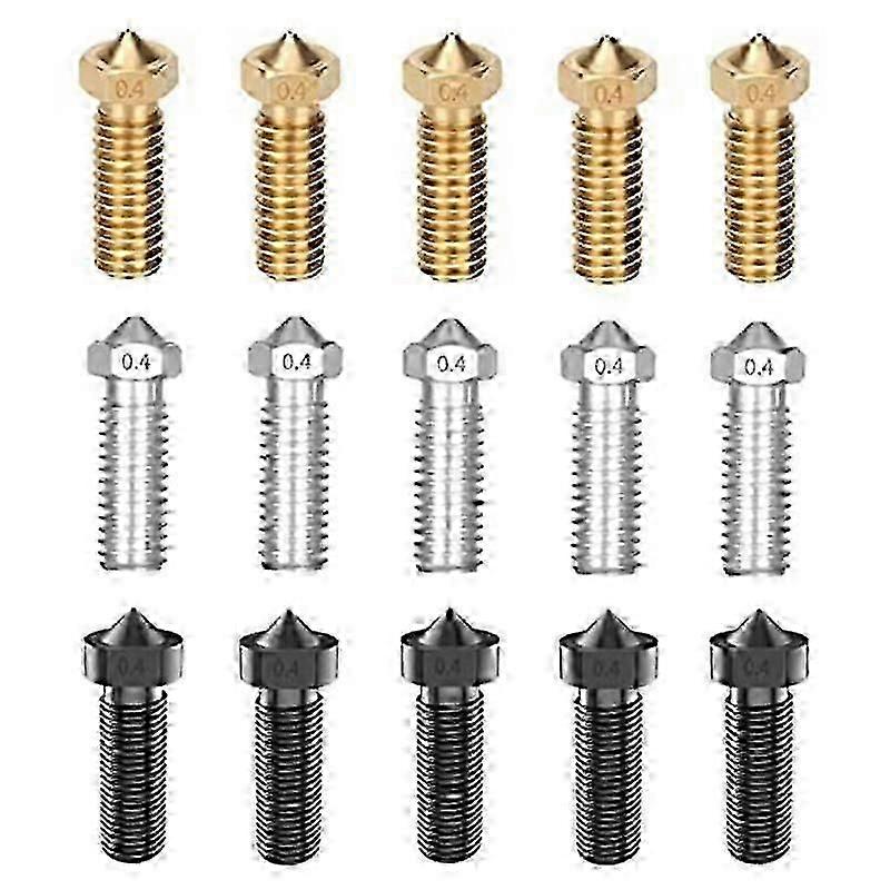 15PCS Nozzles Kit for Anycubic Vyper, 3D Printer Parts Hardened Steel/Stainless Steel/Brass 0.4mm N-2025-ss