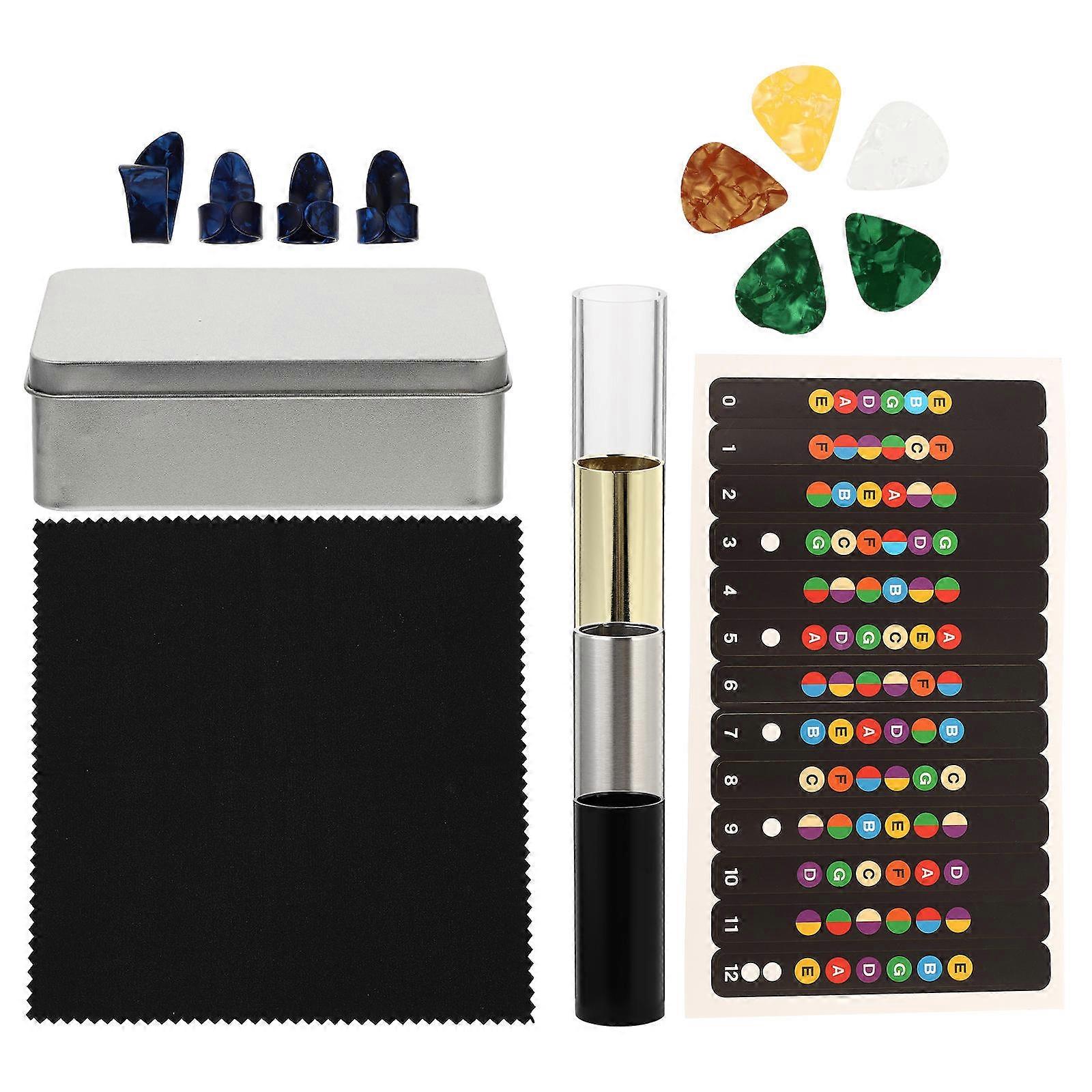 Guitar Slide Kit with Metal & Glass Slides, Finger Cover Picks for Electric, Acoustic, and Bass Guitars – Smooth Accessories for Versatile Tone and