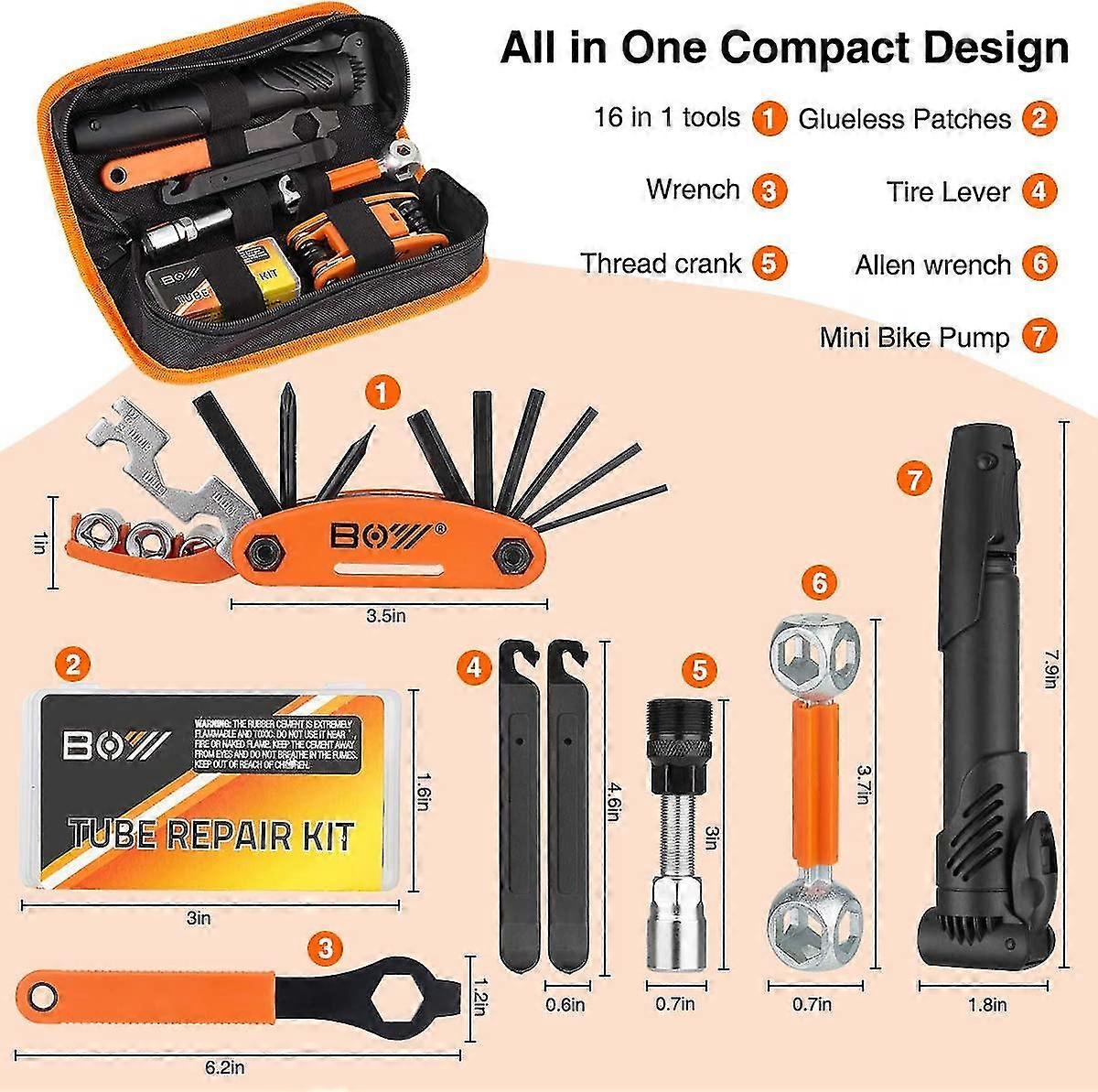 Limited product inventory, bike tool kit, bike repair kit, bike kit, bike tire repair kit, bicycle tool kit, bicycle repair kit, bike tire patch kit, mountain bike tool kit, bike patch kit, bike tools kit set, bike repair multitool, Experience The Best Bicycle Repair In New Mountain Bike Tires Repair Tools.Complete Basic Mountian Compact Professional Accessory, Trike Biking, Cycling Trek Road Survival Assembly Fix Multi-tool Mechanic Parches, Supports The Repair In A Harsh Environment And Immediately Continues To Ride Without Danger.Bike Repair Kit With Pump And Bag, Bicycle Tube Repair Patch Tool Kit, All Accessory Better Than Other Similar Productscompared To The Repair Function Or The Quality Of Accessories.You Can Use A Nylon Velcro To Cling Tightly To The Bicycle Stand And Ride With You Wherever You Want, Without Losing It. Increasing Your Safety Is Our Belief In Our Customers.This Product Is Produced For Experience The Most Convenient Bicycle Indoor And Outdoor Tire Repair, Experience And Suggestions Or Problems, We Agree With All Your Views And Fulfill Commitments.